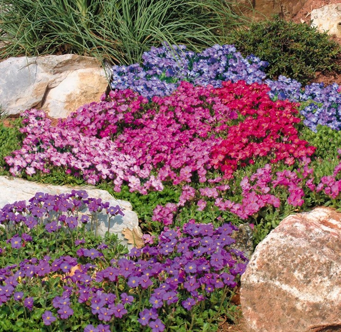 Семена аубреции идеально подходят для создания в саду красочного коврового покрытия. Невысокие растения плотно покрывают поверхность земли стелющимися побегами, на которых появляются многочисленные кисти, собранные из мелких цветков различной окраски: