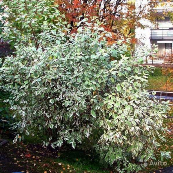 Саженцы дерена белого (Cornus alba) нетребовательны к качеству грунта и уходу, при этом создадут интересные акценты в садовых композициях. Взрослый кустарник поднимается вверх до 3 м. Ветви тонкие, гибкие, ярко-красные или чёрно-красные. Листья тёмно-зелёные, с изнанки сизовато-белые, осенью становятся красно-фиолетовыми. Цветы мелкие, объединены в многочисленные соцветия до 5 см в диаметре, появляются в начале лета, и, иногда — в начале осени. Ягоды белые с синеватым отливом. Цветы и плоды появляются на 2-3-й год. Возможна продажа для дальнейшей высадки в грунт крупномеров дерена белого.