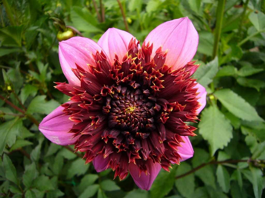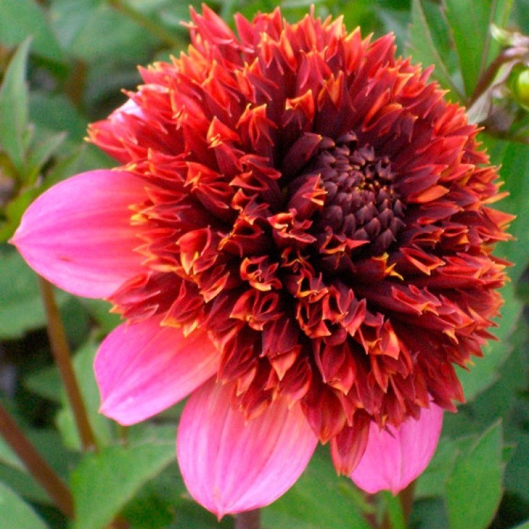 • Окраска цветка : пурпурно-бордовым центром и "юбкой" из ярко-розовых лепестков
