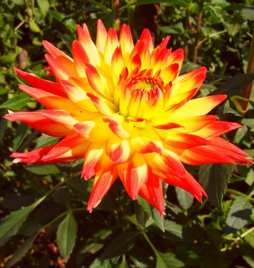 Луковицы георгины Bridgeview Aloha хорошо растут на рыхлых плодородных почвах. Место выбирают хорошо освещенное. При высадке между растениями придерживаются расстояния до 50-70 см. Кустарник вырастает до высоты 90-120 см и цветет все лето. Цветки очень красивые. Они махровые, состоят из многочисленных лепестков, кончики которых постепенно меняют свой цвет и в итоге становятся оранжево-красными. Соцветия крупного размера, диаметром до 15-20 см. Георгины Bridgeview Aloha хорошо смотрятся в саду, в одиночных или смешанных посадках, на клумбах и в бордюрах.