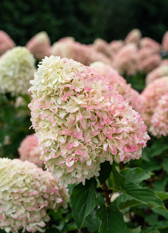 Саженцы Гортензии метельчатой Ливинг Саммер Сноу (Living Summer Snow, Hydrangea paniculata) – ветвистого куст, растет 150 сантиметров в высоту с большими соцветиями, которые до 30-35 сантиметров по длине. Цветение начинается в год высадки и продолжается с июля до октября. Предпочтителен плодородный влажный кислый грунт с перегноем, листовой землей, торфом и песком в балансе 2:2:1:1.