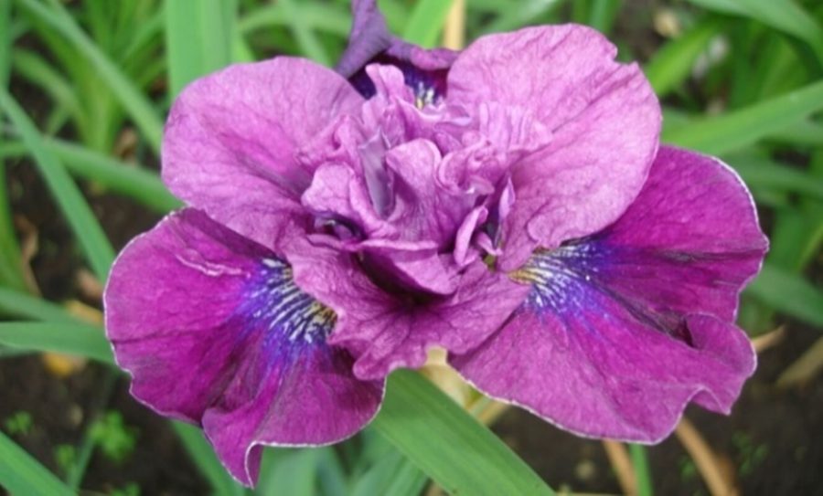 Рассада ириса сибирского Пучок Радости (Bundle Of Joy) разукрасит палисадник яркими весенними красками и создаст прекрасное настроение при наблюдении его цветения. Лепестки у цветка волнистые с шелковой поверхностью. Оттенок бутона лилово-фиолетовый, с пятном сапфирового цвета и белыми вкраплениями у основания нижних лепестков. Высота растения часто достигает метровой отметки.