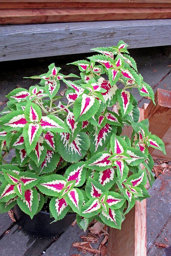 Семена колеуса Визард Роуз (Coleus, Vizard Rouz) заказывают любители эффектных однолетних культур. Высота взрослого растения не превышает 35 сантиметров, расцветка листьев салатово-розовая, текстура — бархатная, приятная на ощупь. При взгляде на кустик, создается впечатление, что он усыпан яркими сердечками. Колеус неприхотливый, для правильного развития и роста ему необходим солнечный свет и периодический полив. Используется для формирования клумб вдоль бордюров и сложных цветочных композициях. Приживается в горшках и кашпо, украшая дом. Хорошо отзывается на редкие подкормки.